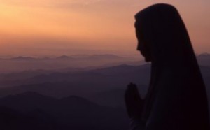 Uma mãe rezando por seus filhos, pedindo às crianças. Os eventos escondidos pelos segredos pode ser menos graves, a Virgem Maria disse – através, em primeiro lugar, da oração, o jejum e penitência.